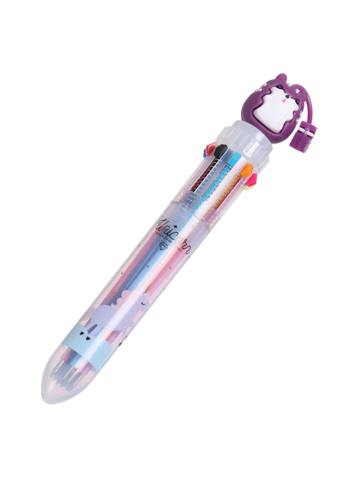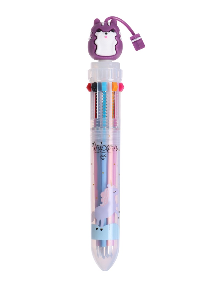 Ручка шариковая автоматическая, 10-ти цветная, Зверушки МИКС