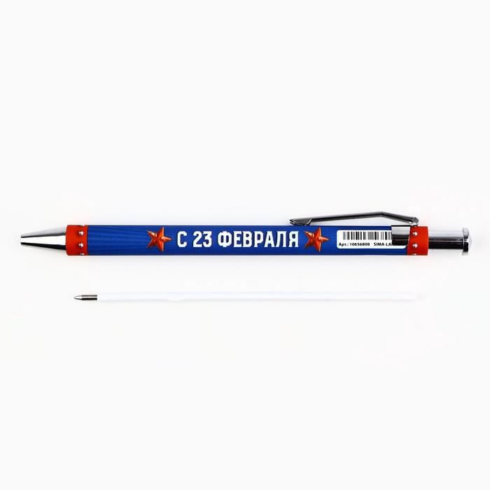 Ручка шариковая, автоматическая, пластик, 0.7 мм, синяя паста «23 февраля: Лучшему из лучших»