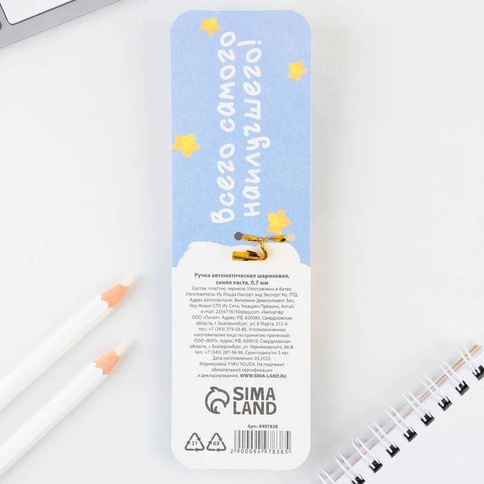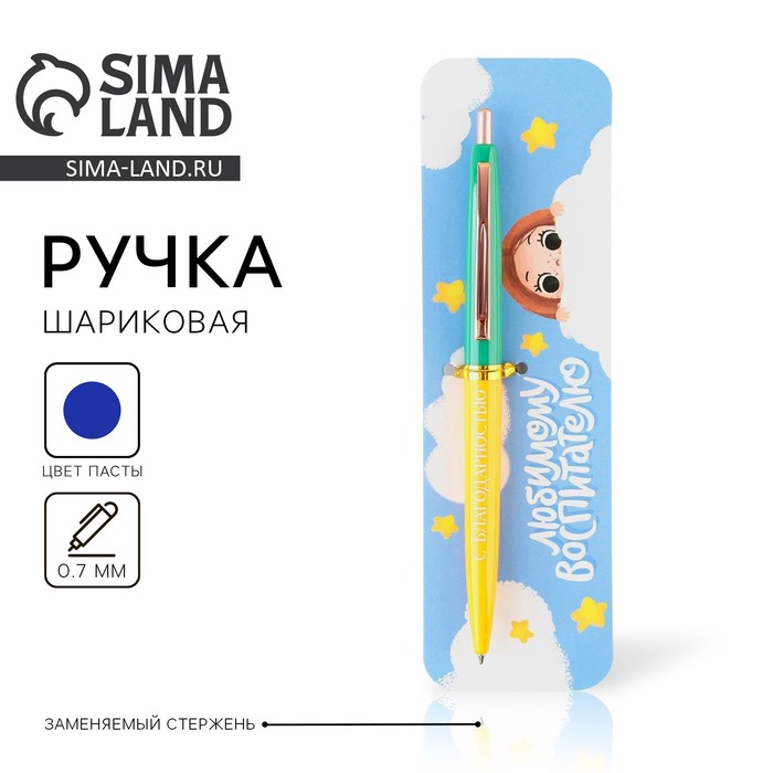 Ручка шариковая автоматическая пластик синяя паста, 0.7 мм «Воспитателю, с благодарностью!»