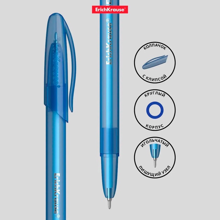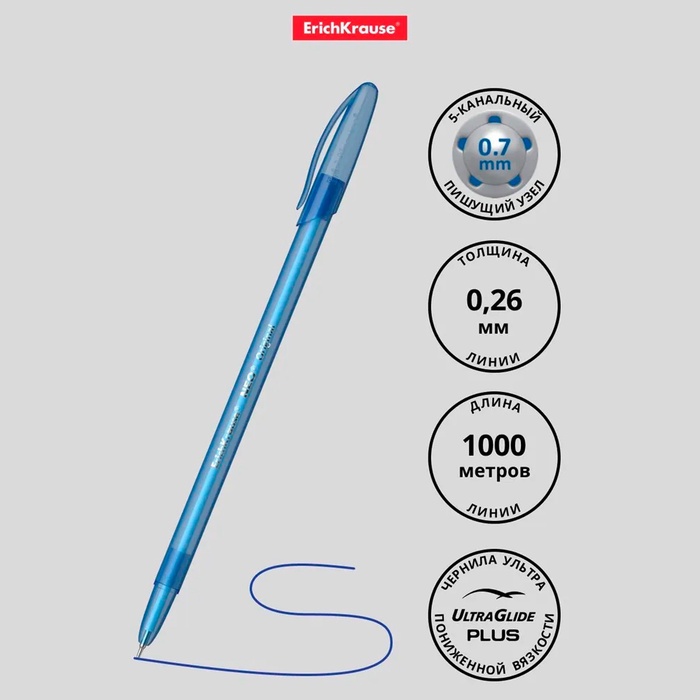 Ручка шариковая ErichKrause Neo Original, игольчатый узел 0.7 мм, чернила синие, супермягкое письмо, длина линии письма 2000 метров