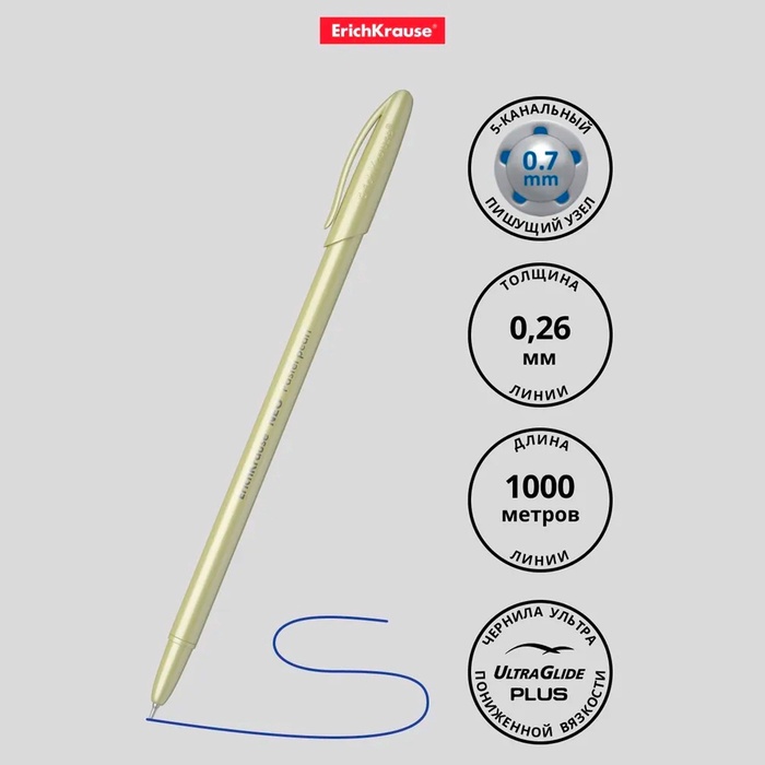Ручка шариковая ErichKrause Neo Pastel Pearl, перламутровый корпус, игольчатый узел 0.7 мм, чернила синие, длина письма 1000 метров, МИКС