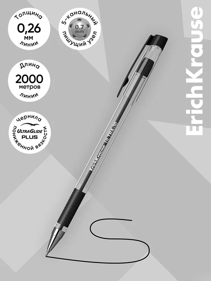 Ручка шариковая ErichKrause ULTRA-30, игольчатый узел 0.7 мм, чернила чёрные, резиновый держатель, длина линии письма 2000 метров