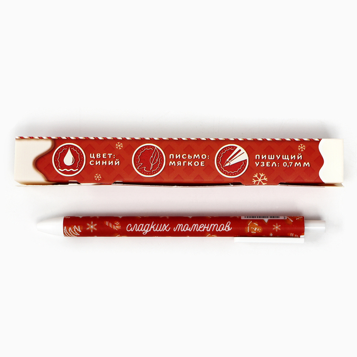 Ручка шариковая, синяя паста, 0.7 мм, автоматическая, матовая, в конверте «Новый год: Уюта и тепла!»