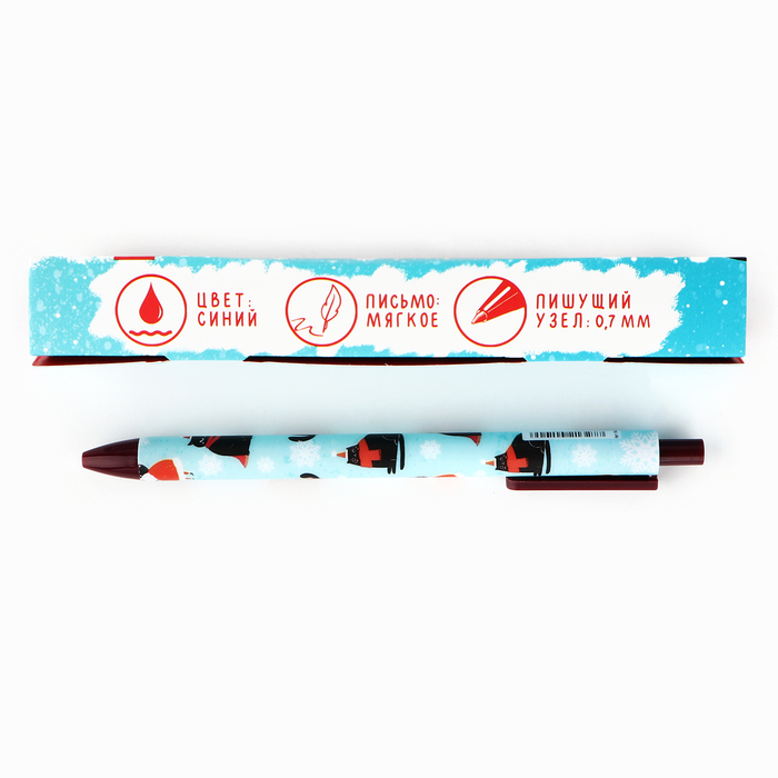 Ручка шариковая, синяя паста, 0.7 мм, автоматическая, матовая, в конверте «С Новым Годом!»