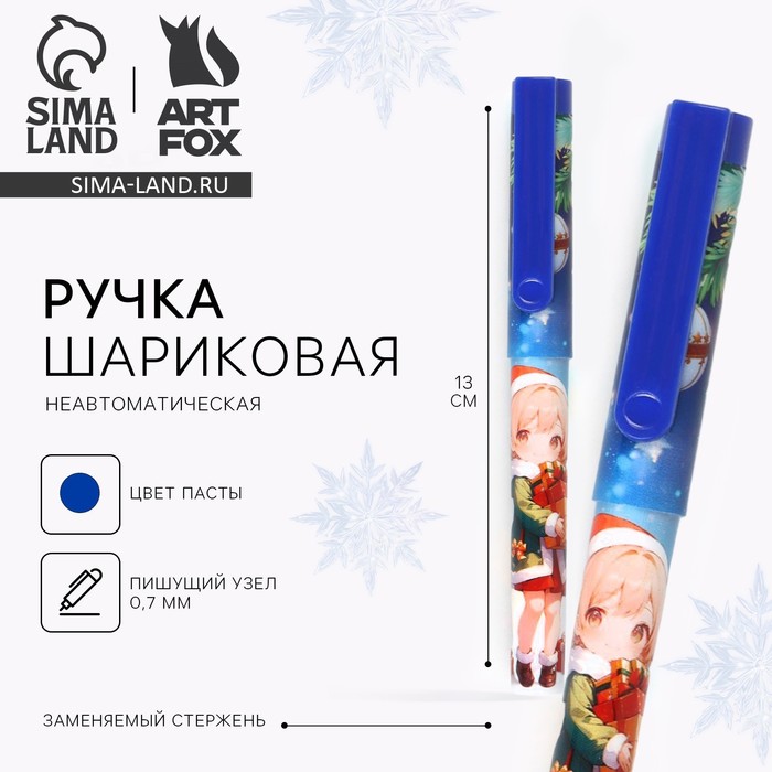 Ручка шариковая, синяя паста, 0.7 мм, с колпачком «Новый год: Аниме»