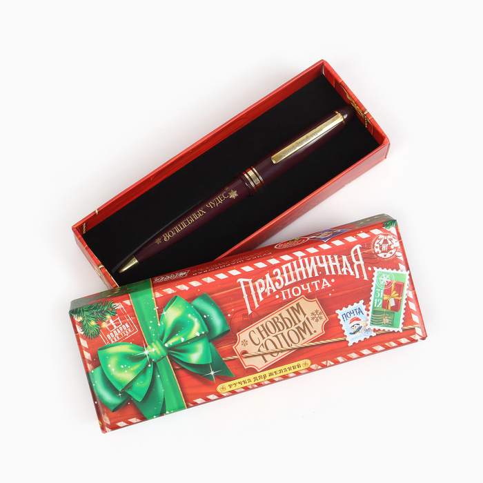 Ручка шариковая, синяя паста, 1.0 мм, автоматическая, в подарочной коробке «Новый год: Праздничная почта»
