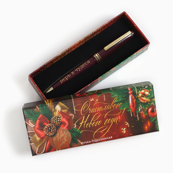 Ручка шариковая, синяя паста, 1.0 мм, автоматическая, в подарочной коробке «Счастливого Нового года!»