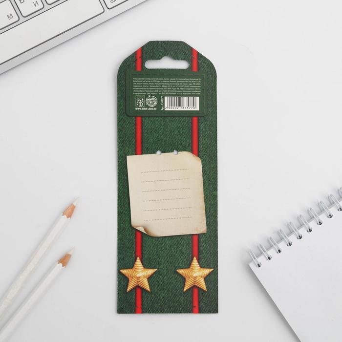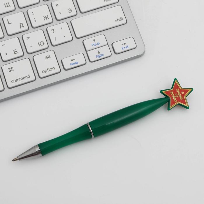 Ручка шариковая, синяя паста, пластик, со звездой, на подложке- погон «23 февраля: С днем защитника отечества»