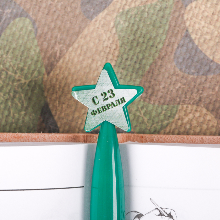 Ручка шариковая синяя паста, пластиковая со звездой «Настоящий защитник», 23 февраля