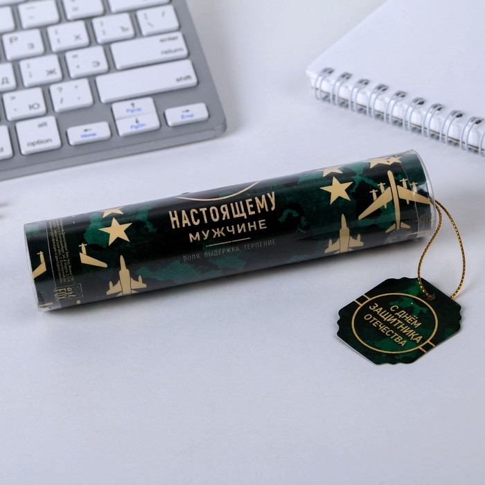 Ручка шариковая, синяя паста в тубусе, пластик «23 февраля: С Днём Защитника Отечества»
