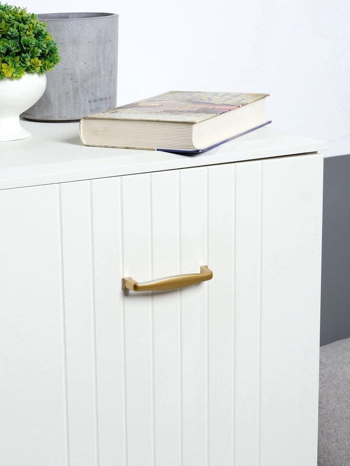 - Изысканный цвет матового золота: Матовое золото подчеркивает современный дизайн и гармонирует с любыми оттенками мебели. Такой выбор добавляет изделию универсальность и элегантный вид.