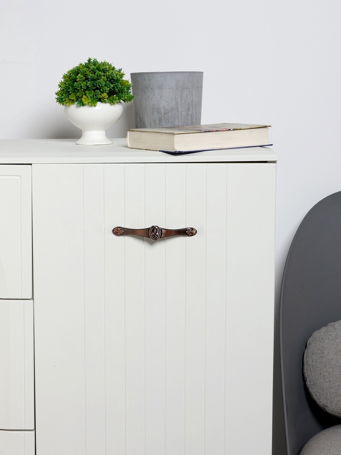 Интересный дизайн ручки сочетается с различными типами мебельного гарнитура. Фурнитура имеет привлекательный внешний вид и компактный размер. Медный оттенок идеально подходит к мебельным фасадам в различной цветовой гамме.