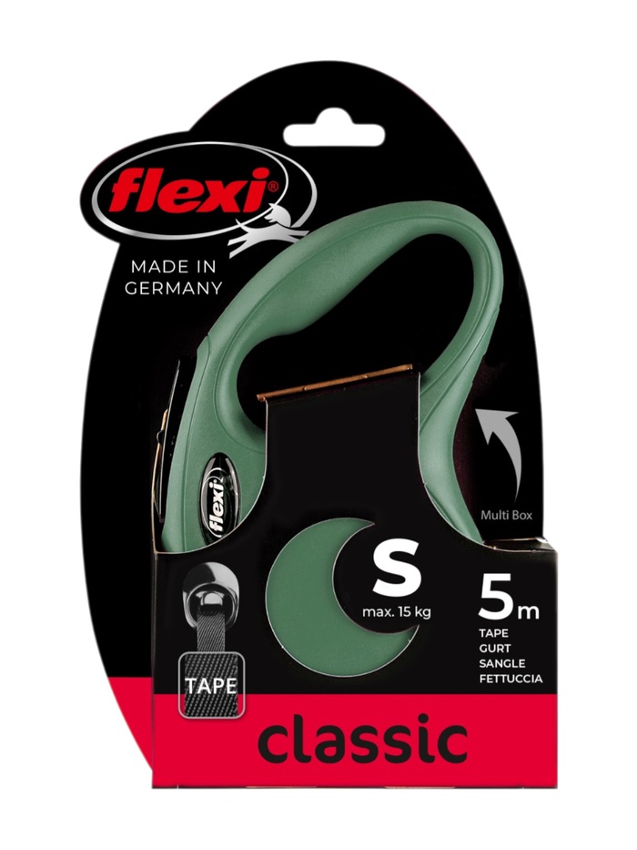 Рулетка Flexi New Classic tape S ( до 15 кг) 5 м лента, оливковая