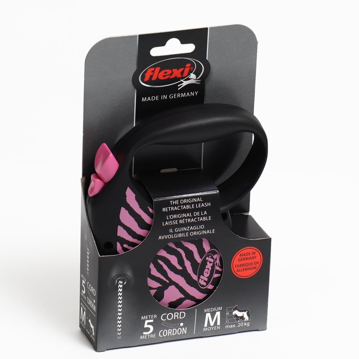 Рулетка Flexi Safari cord M (20 кг) 5 м, розовая зебра (pink Zebra)