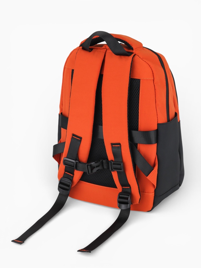 Рюкзак, 27*13*38,5 см, 2 отд 3н/карм, Комби, Водонепрон. дно, оранж/черн