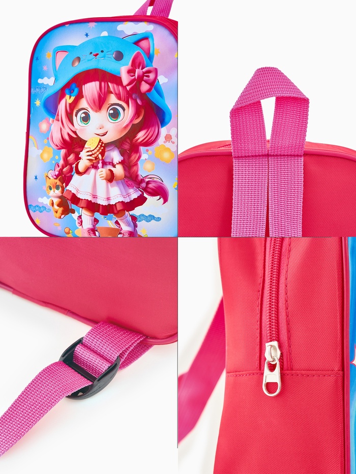 Рюкзак детский 20,5*9*24, отд на молнии, девочка ярко-розовый