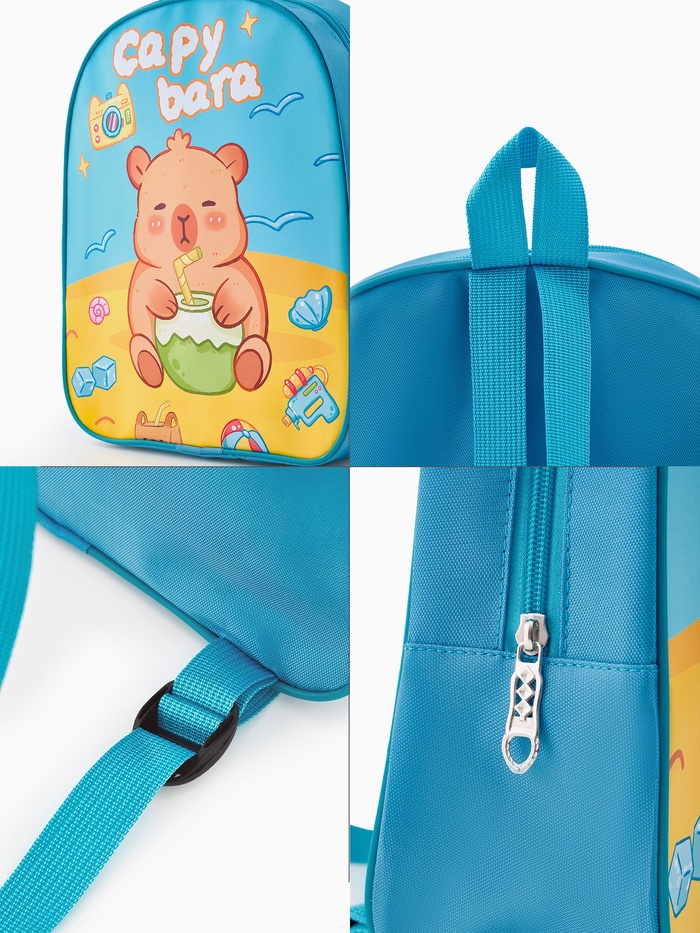 Рюкзак детский 27*10*30, отд на молнии, капибара голубой