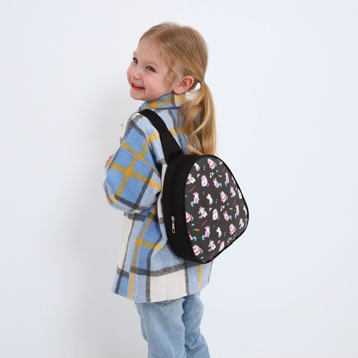 Рюкзак детский для девочки через плечо «Единорог», отдел на молнии, чёрный