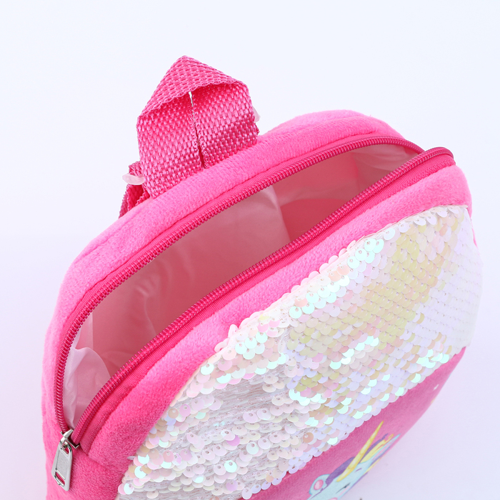 Рюкзак пригодится в дороге маленьким деткам. В него без труда поместится пакетик с соком, карандаши или любимые игрушки. Длина плечевых ремней регулируется в зависимости от роста крохи. Лёгкий аксессуар не создаёт дополнительной нагрузки на спину. При необходимости его можно подвесить за ручку, расположенную сверху.
