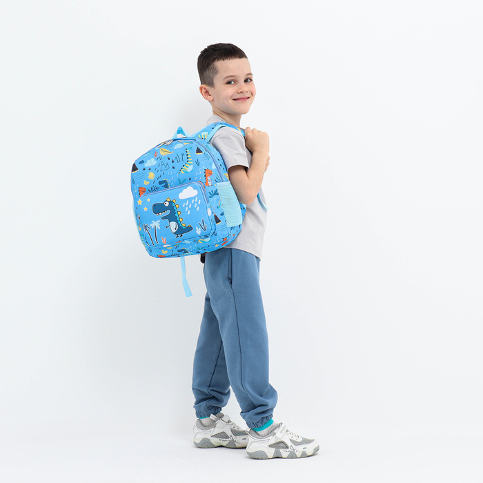 Рюкзак детский на молнии, 3 наружных кармана, цвет голубой