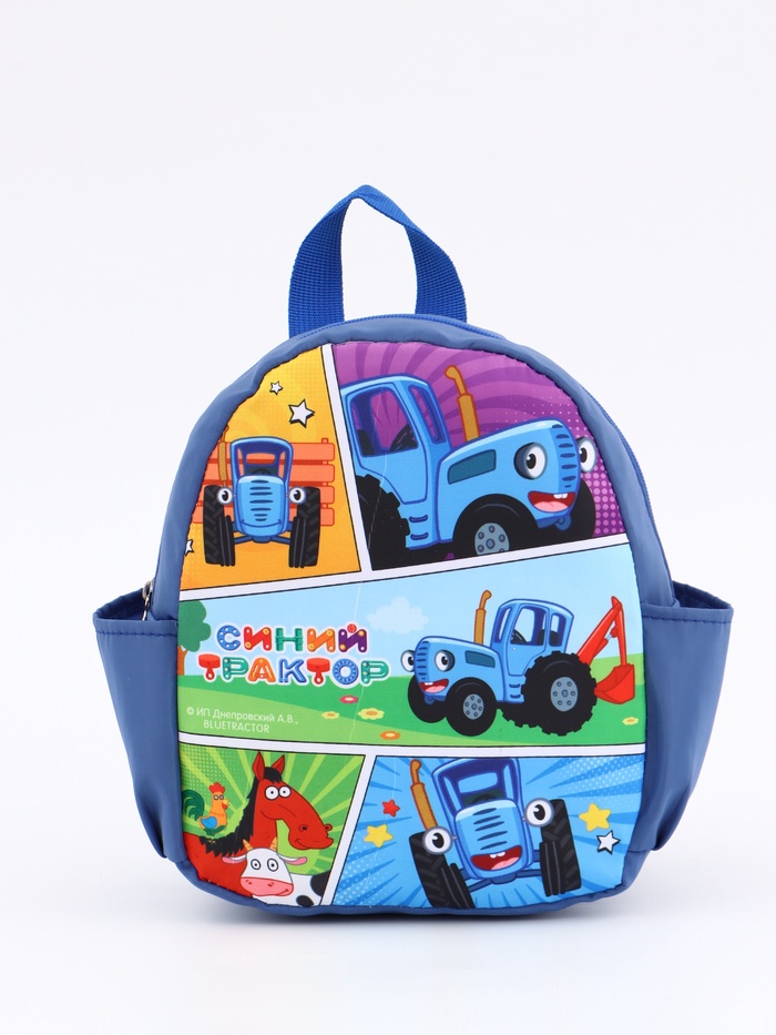 Рюкзак детский с боковыми карманами 22х18х8 см, Синий трактор