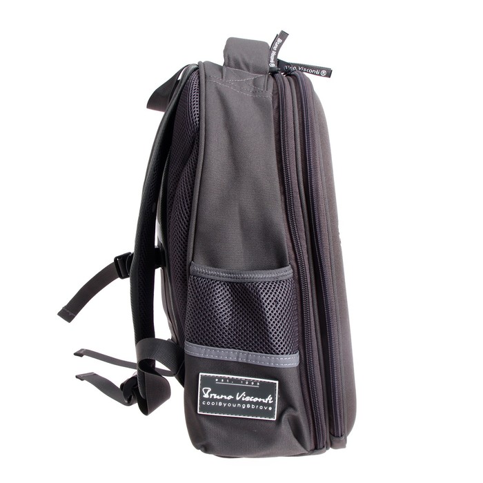 Рюкзак имеет два основных отделения: первое отделение содержит органайзер с молнией и карман-сеточку, второе отделение состоит из трех частей с двумя разделителями с фиксирующим ремнем и дополнено карманом на молнии для карточки. Рюкзак снабжён четырьмя светоотражающими элементами. Усиленное дно рюкзака оснащено резиновыми ножками, защищающими от загрязнения и влаги.