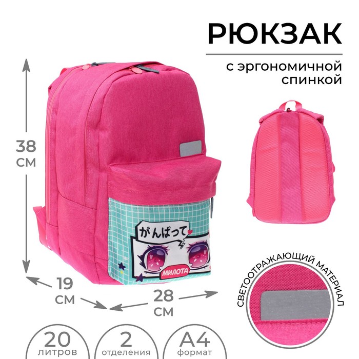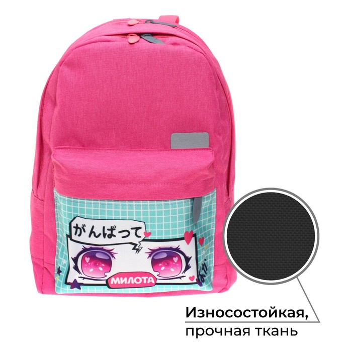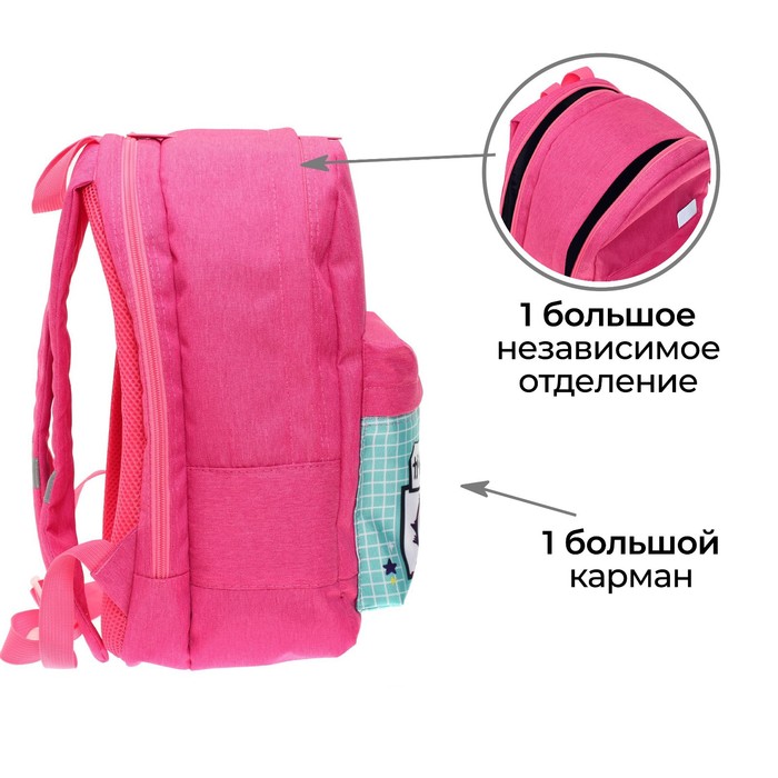 Ученический рюкзак для среднего школьного возраста предназначен для переноски личных вещей и школьных принадлежностей. Верх изделия выполнен из прочного водоотталкивающего материала с покрытием ПУ. Отдельные элементы оформлены оригинальным принтом. Внутренняя поверхность изготовлена из цветной подкладочной ткани, соответствующей дизайну.