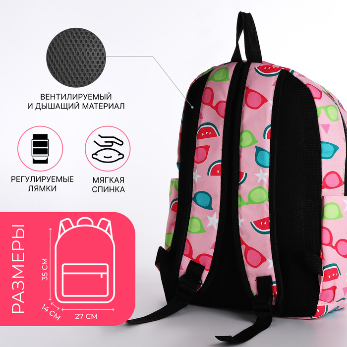 Рюкзак молодёжный на молнии, 3 наружных кармана, цвет розовый