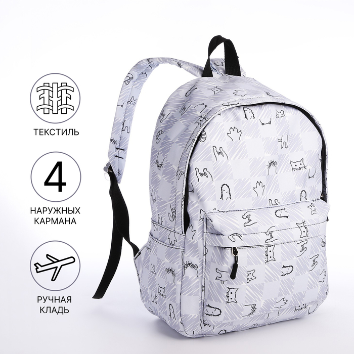 Рюкзак молодёжный на молнии, с карманом, однотонный, размер 29×13.5×40 см, серый