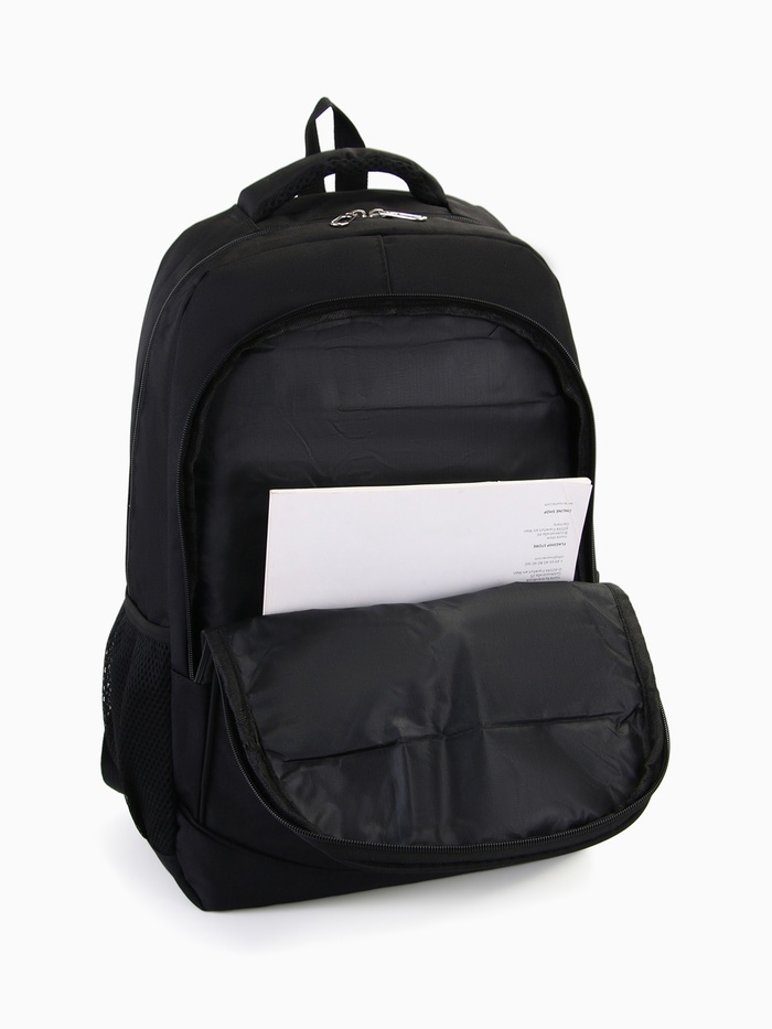 Рюкзак молодёжный на молниях, с принтом, 4 кармана, с принтом, размер 35×18×50 см, чёрный/серый