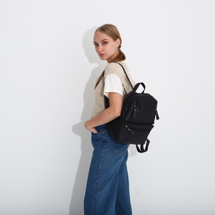 Рюкзак на молнии, 3 наружных кармана, цвет чёрный