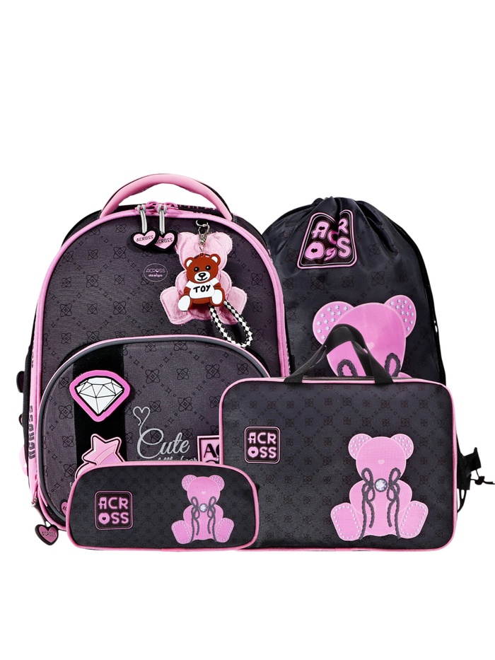 Рюкзак имеет 4 отделения , внутри 2 отделения формата А4, которые для удобства разделены между собой под учебники и тетради. Передний внешний кармана портфеля можно использовать как органайзер под канцелярию, что заменит школьнику пенал. Ранец школьный также оснащен боковыми открытыми карманами под воду, зонт. Рюкзак для начальной школы продуман до мелочей. С помощью декоративной подвески на бегунке молнии, дети смогут легко застегивать и расстегивать молнию в обе стороны