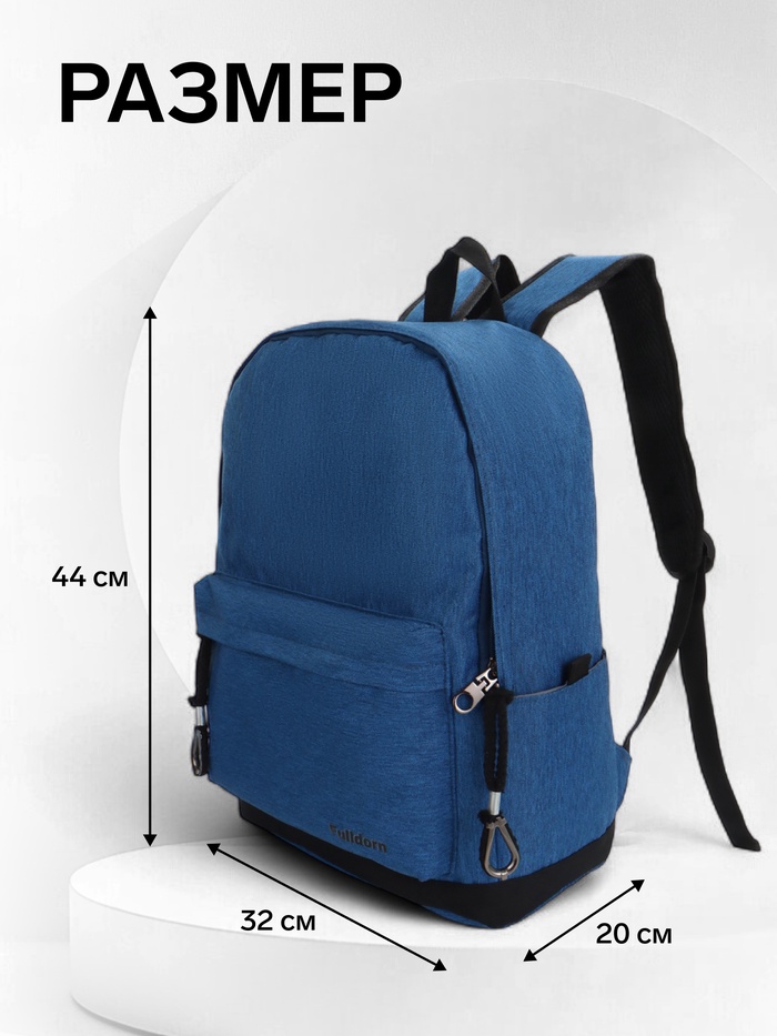 Рюкзак школьный FULLDORN на молнии, с карманами, однотонный, размер 32×20×44 см, синий