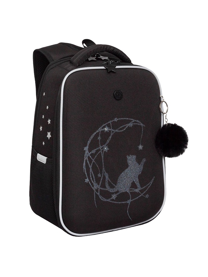 Черный школьный рюкзак Grizzly с рисунком кота создан для девочек 1-5 классов, которые ценят удобство и выразительный дизайн. Жесткая эргономичная спинка обеспечивает правильную осанку, а милый кошачий принт добавляет образу индивидуальности.