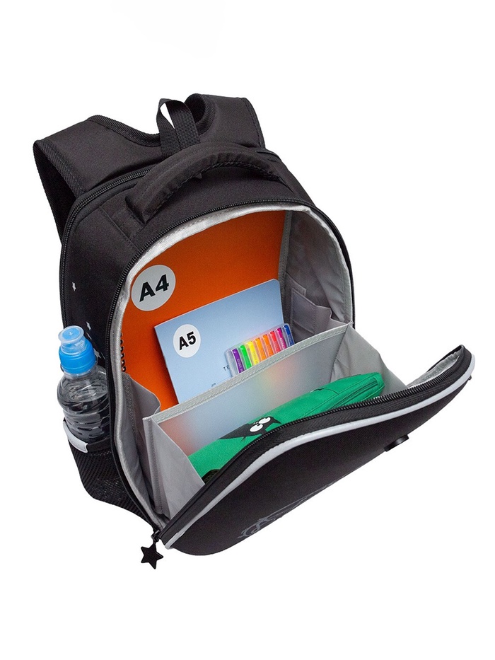 - Опора для детской спины: Жесткий каркас и анатомическая спинка равномерно распределяют нагрузку. Широкие лямки с мягкими вставками и грудная стяжка делают ношение комфортным даже с полным набором учебников.