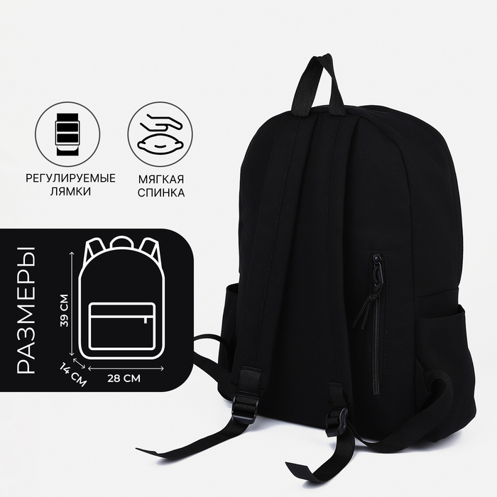 Рюкзак школьный на молнии, 4 наружных кармана, цвет чёрный