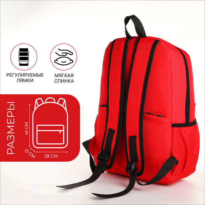 Рюкзак школьный на молнии, 4 наружных кармана, цвет красный