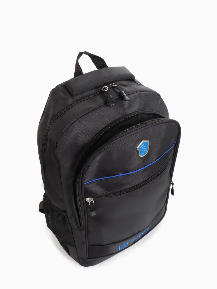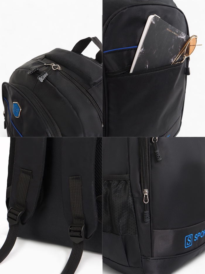 Рюкзак школьный на молнии, с 4 карманами, с надписями, однотонный, размер 31×14×47 см, чёрный/синий