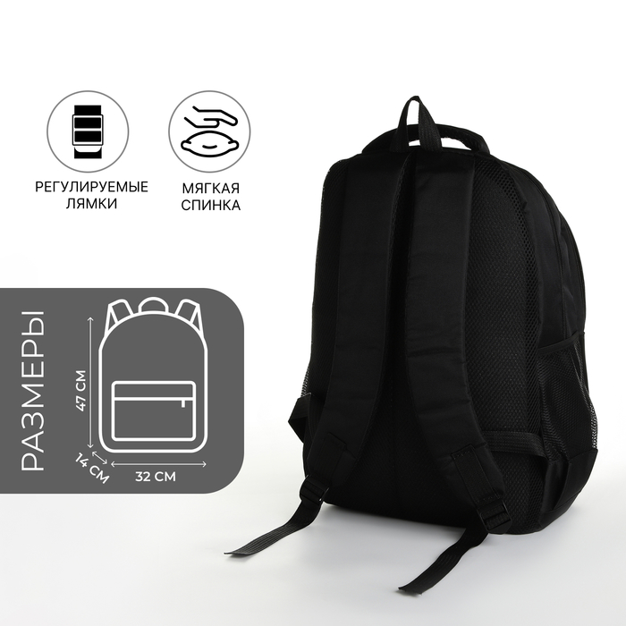 Рюкзак школьный на молнии, с карманами, чёрный/серый