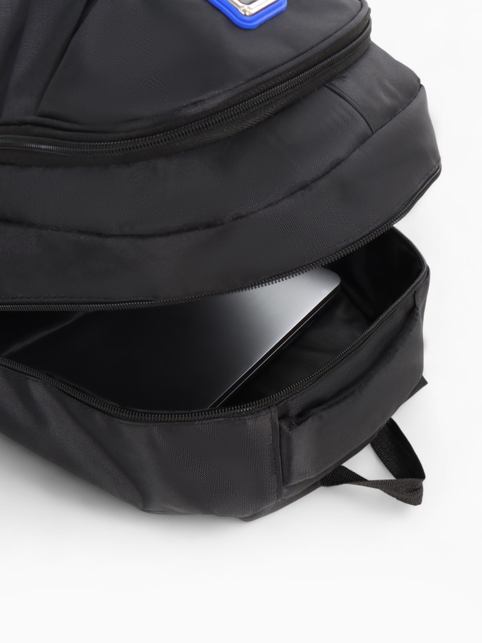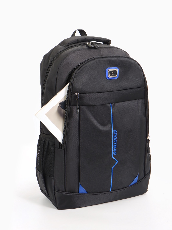 Рюкзак школьный на молнии, с карманами, чёрный/синий