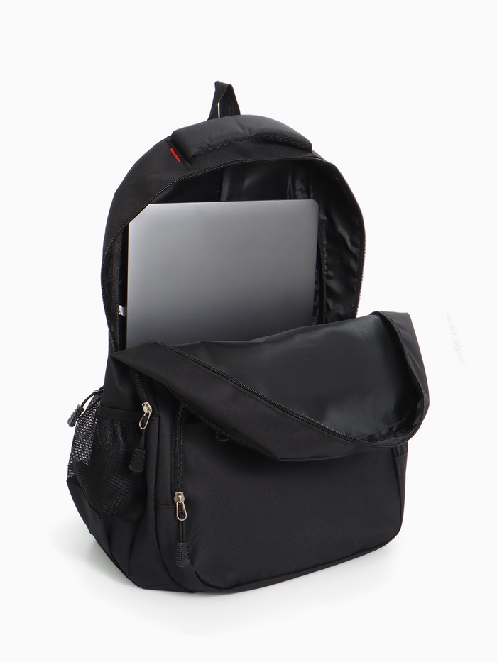 Рюкзак школьный на молнии, с карманами, однотонный, размер 30×14×46 см, чёрный