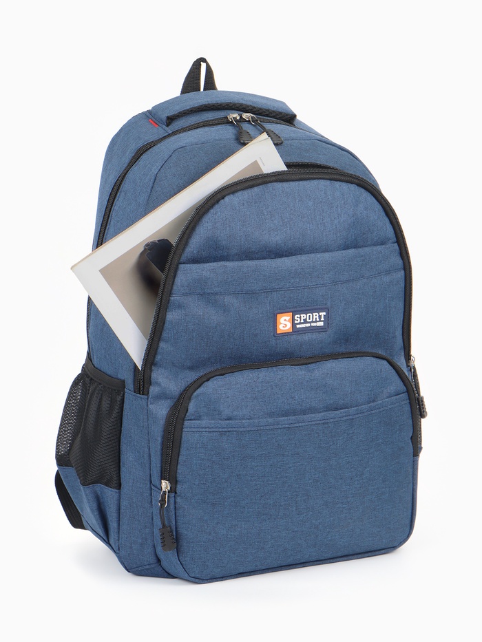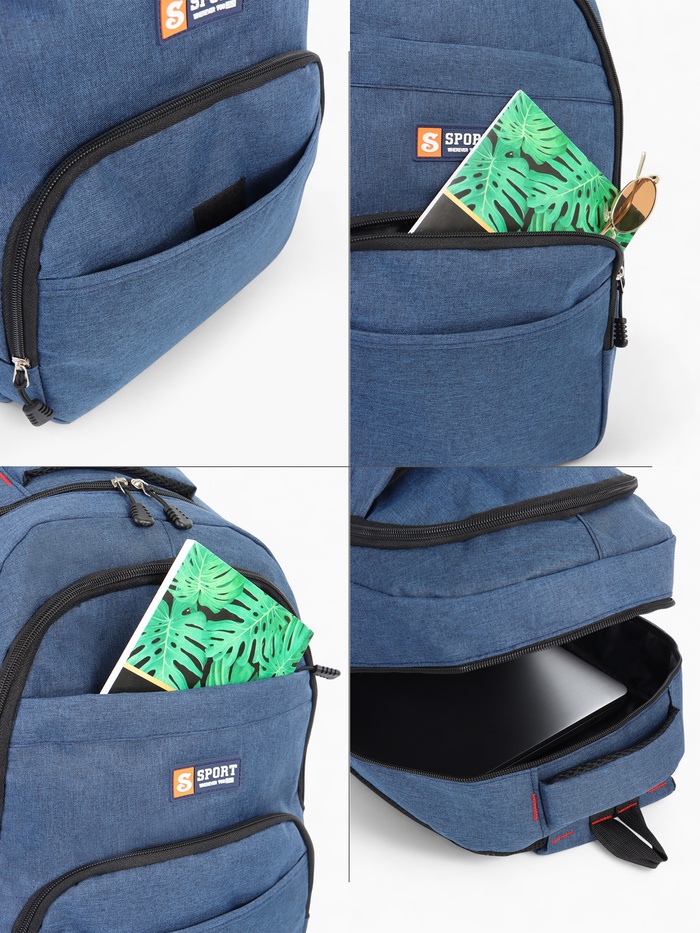 Рюкзак школьный на молнии, с карманами, однотонный, размер 30×14×46 см, синий