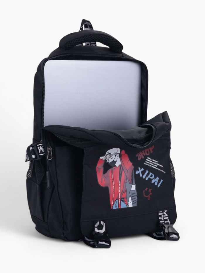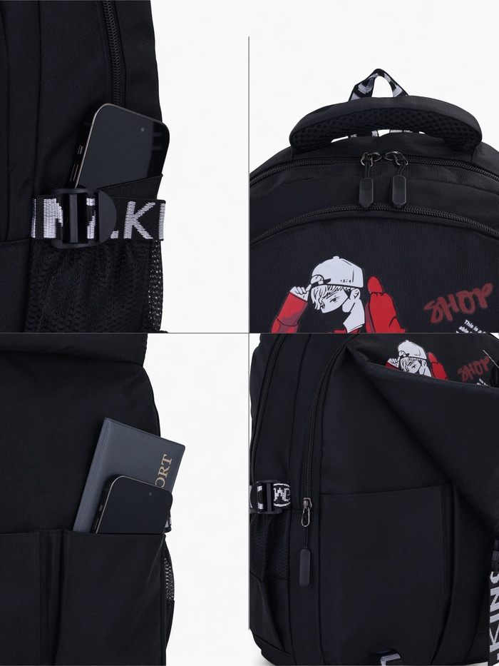 Рюкзак школьный из текстиля, 4 кармана, цвет чёрный/разноцветный