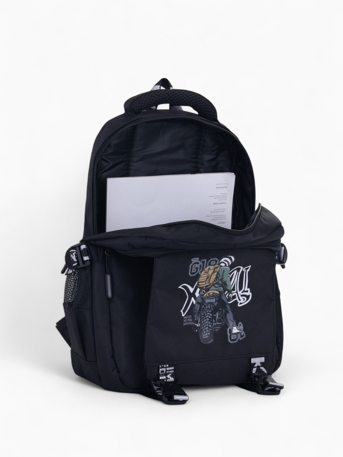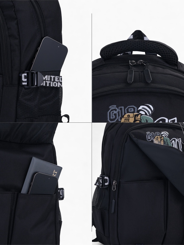 Рюкзак школьный на молнии, с карманами, принтом, размер 28×11×41 см, чёрный/серый