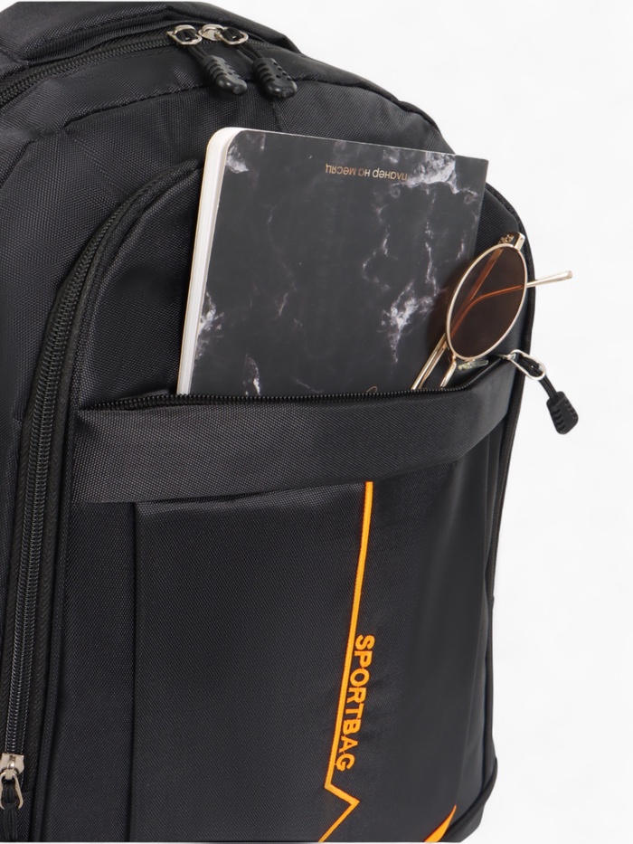 Рюкзак школьный на молнии, с карманами, размер 31×14×45 см, чёрный/оранжевый