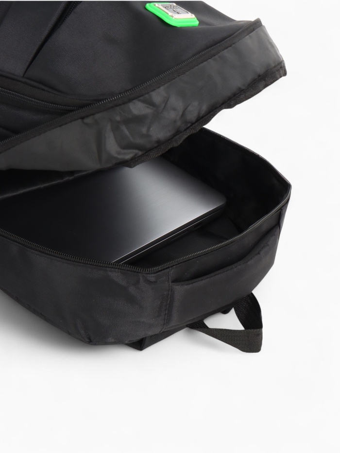 Рюкзак школьный на молнии, с карманами, размер 31×14×45 см, чёрный/зелёный