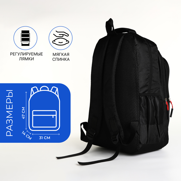 Рюкзак школьный на молнии, с карманами, размер 31×14×47 см, чёрный/красный