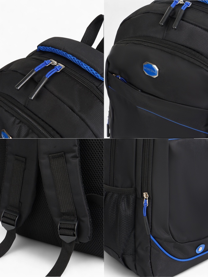 Рюкзак школьный на молнии, с карманами, размер 31×15×46 см, чёрный/синий