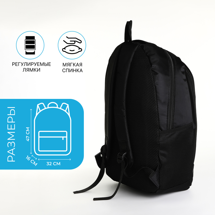 Рюкзак школьный на молнии, с карманами, размер 32×16×47 см, чёрный/синий