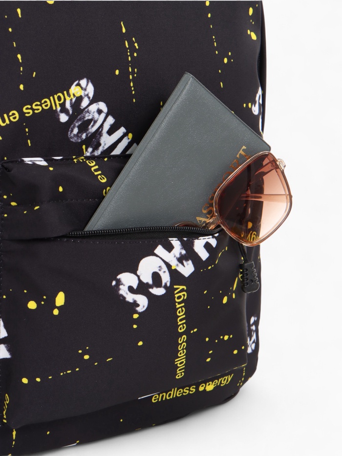 Рюкзак школьный на молнии, с карманами, с абстрактным принтом, размер 30×13×42 см, чёрный/жёлтый